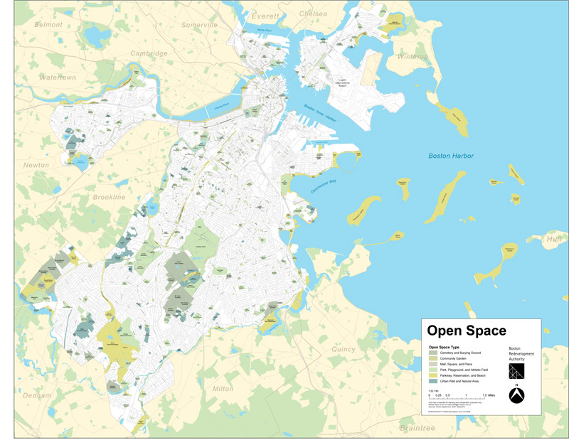 Boston Parks and Open Spaces. Last update 7/2017. 44"x34"