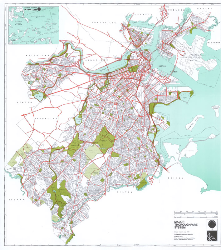 Map of Boston's Major Thoroughfares. Last update 1994.
