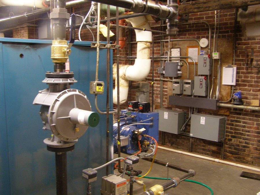 The upgraded boiler system, featuring a new burner and gas line, at the China Trade Center.
