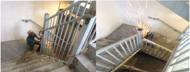 The safety railing was fabricated at a height of 48” to ensure a greater sense of comfort and safety while ascending and descending the stairs.
