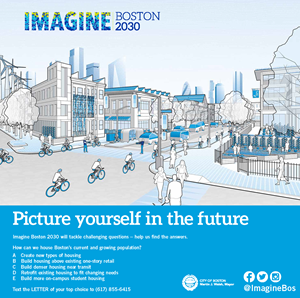 ) using #ImagineBoston. We encourage all those who live, work or play in Boston to stop by the photo booth, learn more about the Imagine Boston 2030 citywide planning initiative, and share their vision for Boston’s future. A full list of photo booth dates and locations is below:
