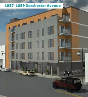 The proposed 1857-1859 Dorchester Avenue project is adjacent to the MBTA Red Line and located two blocks north of Peabody Square. As proposed, the project will be a five-story, mixed-use building totaling approximately 26,896 total square feet. The building will create 20 rental units, including three IDP units. The units will be a mix of 16 two-bedroom units and four one-bedroom units. Bicycle storage and a trash/recycling room will be located within the ground level of the building. The building will also include two commercial/retail spaces and 24 on-site parking spaces.