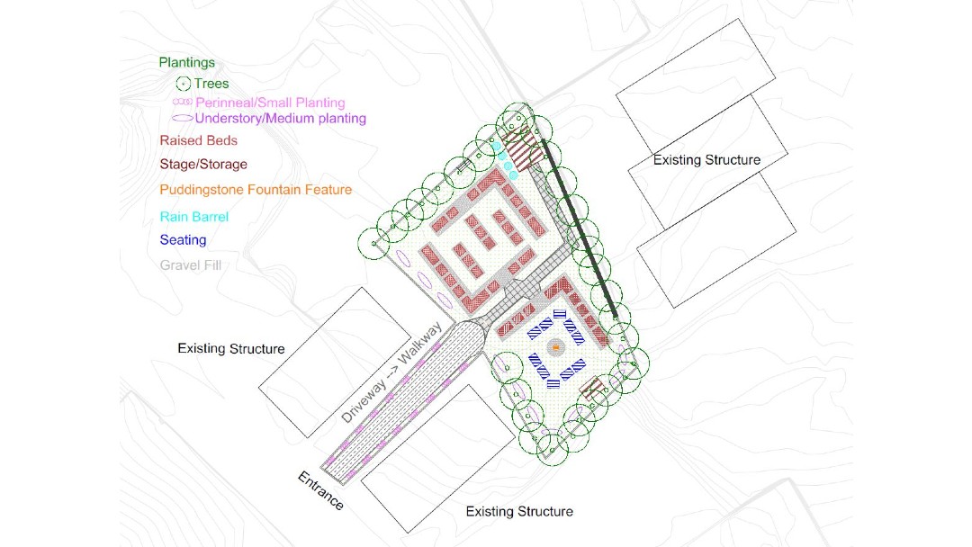 This property will be an organized urban wild open space for the community. The space will be a place where community members can gather outdoors for social, mental, and physical well-being.