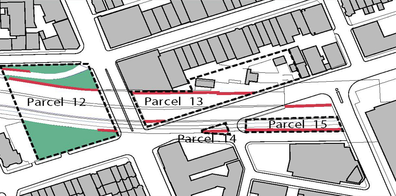 Parcels 12 – 15 are located around the intersection of Boylston Street and Massachusetts Avenue in the Back Bay neighborhood. Parcel 12 forms a 400-foot gap along Massachusetts Avenue, while Parcels 13, 14 and 15 create a 990-foot and 550-foot gap respectively along Boylston Street.