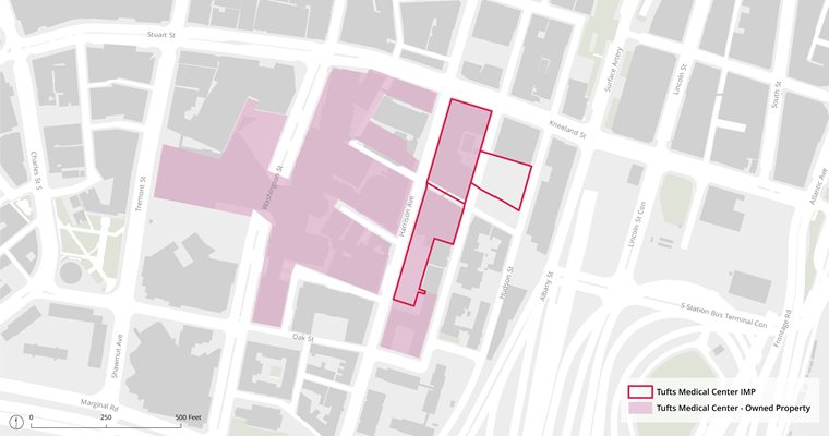 The 2012 Tufts MC IMP proposed no immediate changes to the main campus and facilities of the institution nor any proposed institutional projects, only smaller internal improvement projects were planned. Tufts MC completed the smaller internal renovation and construction projects and has continued institutional operations in a manner consistent with the 2012 Tufts MC IMP which constitute a change in use, dimensional, parking, or loading elements thereof (other than de minimus dimensional changes); and does not anticipate any greater impacts from the continuation of the implementation of the 2012 Tufts MC IMP than which were originally evaluated. Tufts MC seeks to extend the 2012 TMC IMP for an additional two-year term.