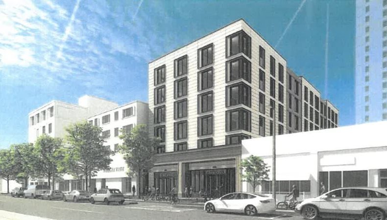 Proposed construction of a new 6-story building, five (5) stories of residential uses with a common roof deck that will include fifty-five (55) total Dwelling Units, five (5) three-bedroom residential units, fifteen (15) two-bedroom residential units, twenty (20) one-bedroom residential units and fifteen (15) studio units, 3,653 square feet of ground floor retail, a residential lobby, parking for forty-four (44) bicycles and storage.