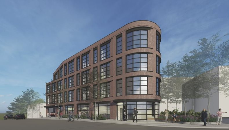 The proposed project consists of 24 residential units and 18 at-grade garage spaces. This will also include 1,650 SF of ground-floor commercial space.