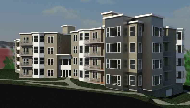 The proposed project consists of the demolition of an auto-body shop and multifamily dwelling and the construction of a 44 unit residential building with 44 off-street parking spaces.