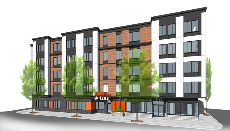 The Notice of Project Change ("NPC") consists of a mixed-use residential and commercial development in a new five-story building that includes thirty-two (32) rental units, 2,500 square feet of cafe/restaurant space, thirty-two (32) at grade parking spaces, and covered storage for thirty-two (32) bicycles located in the parking area. The preliminary unit breakdown is sixteen (16) one-bedroom units and sixteen (16) two-bedroom units.