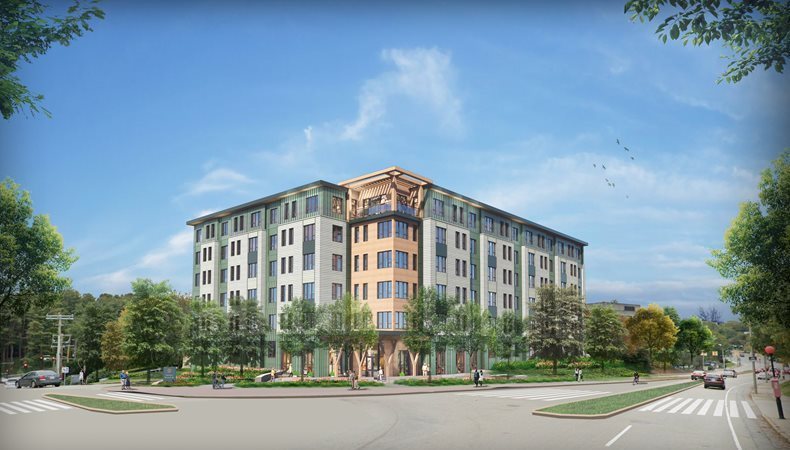 Hebrew SeniorLife (HSL) proposes to build a 78-unit affordable senior housing community in partnership with the BHA/HUD through the Restore Rebuild program. The project will be located at the corner of Centre Street and Walter Street in Roslindale on a site owned and operated by HSL. The HSL campus includes a comprehensive healthcare and research facility that provides a range of services to seniors, from rehabilitation and outpatient care to end-of-life support. The proposed development will repurpose an existing parking lot, comprising 0.78 acres of the 9.4-acre site. The proposed 6-story building will include 78 deeply affordable senior housing units, composed of seventy-four one-bedroom units and four two-bedroom units. There will be shared amenity spaces that include staff offices, a multi-purpose room, a wellness room, a reception area/lobby, mail and package rooms, a library, a bike storage room, and a fitness room. Residents accessing the common amenity space at level 6 will be able to enjoy the view down Centre Street, expansive views of the Arboretum, and of the City skyline.