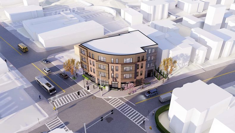 Raze existing structure; erect a new four-story mixed-use building with eighteen (18) residential units, one (1) 1,180 sf ground floor commercial retail space, twenty-four (24) bicycle spaces, and eleven (11) interior parking spaces.