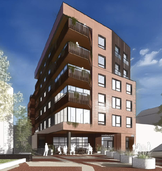 Erect a new six-story mixed-use building to contain approximately 34 dwelling unit and a ground-floor restaurant, with no on-site parking.