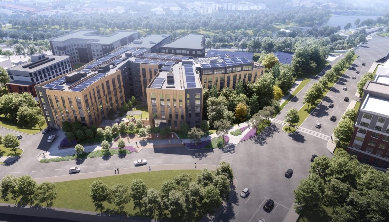 The Project proposes the demolition and removal of the radio tower, demolition of the existing office building onsite, removal of acres of asphalt parking lot, and construction of an approximately 333-unit residential building consisting of an assemblage of various height elements and 175 below-grade parking spaces for residents. The unit mix is anticipated to be approximately 111 studio units, 164 1-bedroom units, 51 2-bedroom units, and seven 3-bedroom units. The Project program is included in Table 1-1 of the PNF. Figure 1-8 provides the proposed site plan.