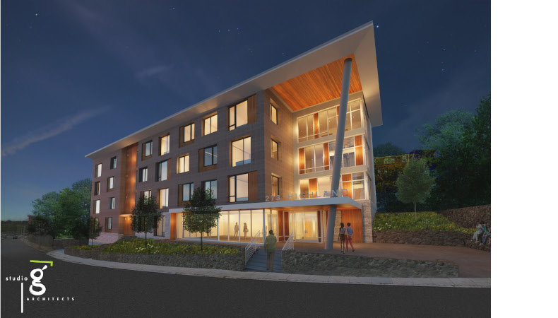 The new construction of 23 mixed-income multi-family units in a four-story building that includes a semi-below-grade parking garage for 19 spaces, and community art space, along with related improvements in site, landscaping, and pedestrian and vehicular access, undertaken in conjunction with the City of Boston's Energy Positive (E+) Green Building Program.