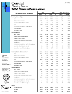 Age, Race, Ethnic and Housing Data for the Central Planning District.
