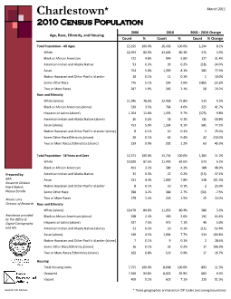 | The neighborhood of Charlestown by Age, Race, Ethnicity and Housing from the 2010 Census.