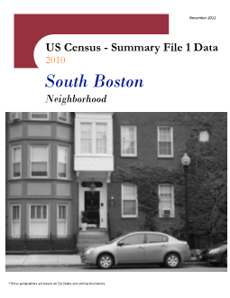 | The following reports feature selected data collected on all people and households in the 2010 Census and are from the 2010 Census Summary Files (SF-1).Population information included these reports are sex, age, race, Hispanic or Latino origin, household and family characteristics, and group quarters population. Housing items include whether a housing unit is owner-occupied or renter-occupied, as well as occupancy and vacancy status. This report is a profile of Jamaica Plain.