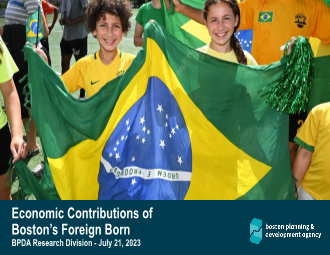 | This presentation and report present the Research Division's study on the Brazilian scientific diaspora in Greater Boston. Using labor market data analysis from LinkedIn profiles, this study identifies and maps Brazilian professionals contributing to the Greater Boston Area's scientific and innovation ecosystem. View the presentation by clicking here or on the thumbnail. View the report here.