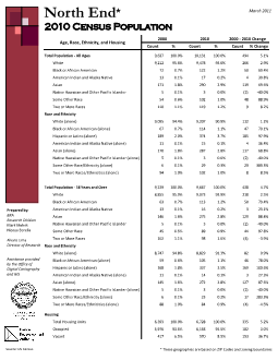 Age, Race, Ethnic and Housing Data for the South End Planning District.