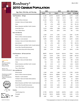 Age, Race, Ethnic and Housing Data for the West Roxbury Planning District.