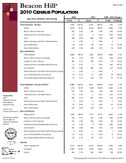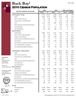 Age, Race, Ethnic and Housing Data for the Fenway-Kenmore Planning District.