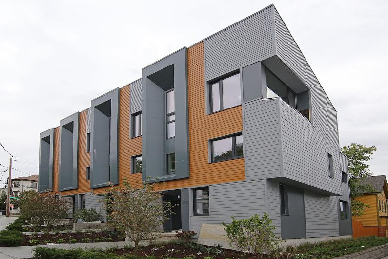 The project is certified LEED for Homes Platinum with 90.5 points and has achieved HERS ratings between -6 and -9 across all four homes. The project utilizes high efficiency Heat Recovery Ventilator for air exchange and ductless mini split systems to provide heating and cooling. Hard surface flooring, cleanable walk-off mats, and areas to promote shoe removal beside the entryway all seek to create an environment with fewer respiratory irritants. Interior finishes feature low VOC paints and FSC certified cabinetry. The building envelopes are designed to be thermally robust; double-stud wall construction, high insulation levels, prevention of air infiltration at seams and transitions, and the installation of triple-glazed high performance windows all help to reduce heating and cooling energy use. All appliances are Energy Star rated.