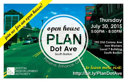 Description: The BRA is launching a process to create a new vision and plan for the Dorchester Avenue corridor area in South Boston. Residents, property owners, business owners, community and civic groups are invited to this open house event to learn more about the study, the area, and how to get involved.