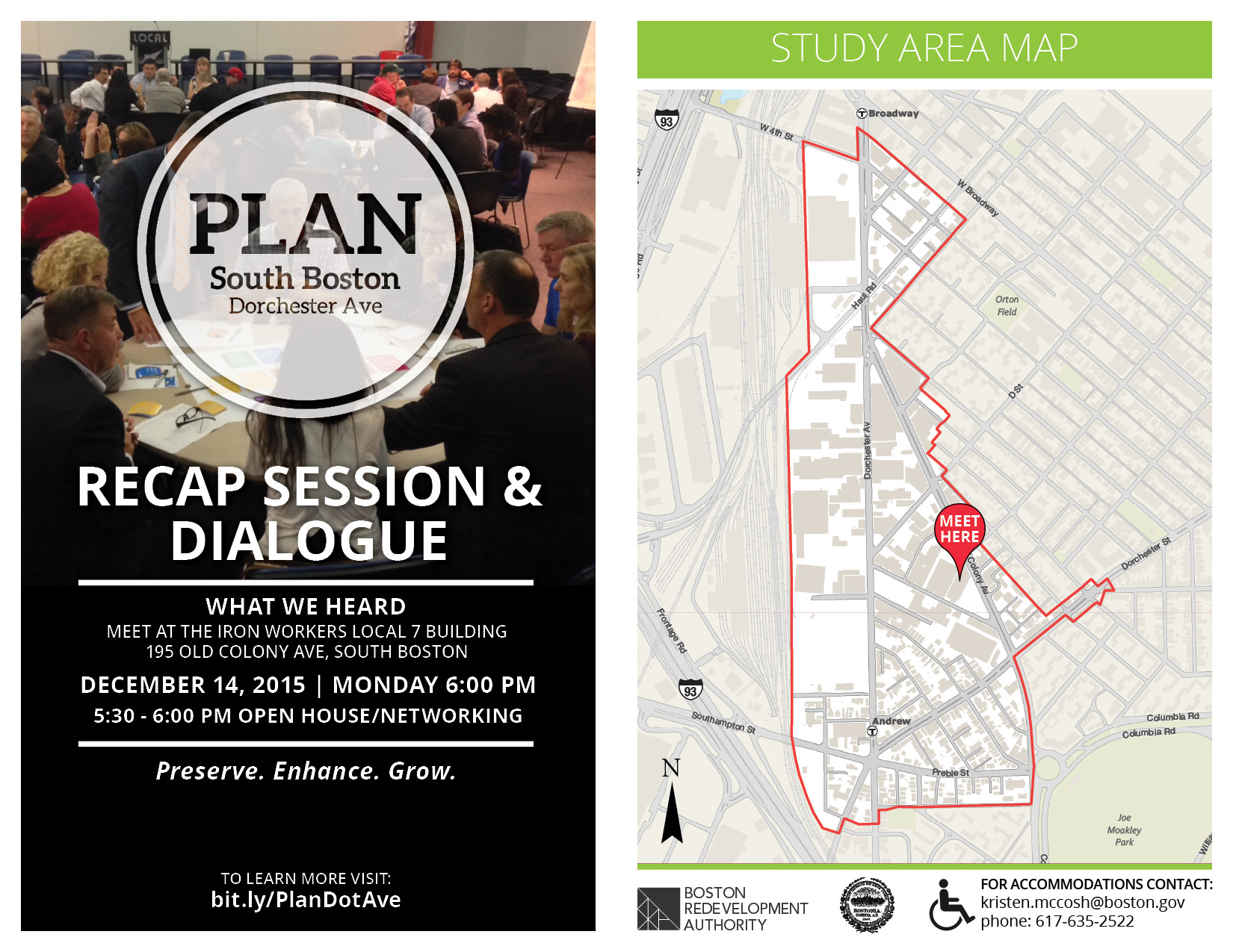 As we conclude the workshop portion of the planning study, we will have a conversation about the elements and components of a draft plan. Open House/Networking starts at 5:30 PM, then the Recap Session/Dialogue starts at 6:00 PM.