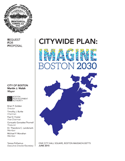 Mayor Martin J. Walsh today announced the release of a Request for Proposals for consulting services to support Imagine Boston 2030, an effort to create Boston’s first citywide plan in fifty years. The RFP calls for a lead consultant as well as public outreach and communications services. The ideal respondent will have experience managing citywide planning projects, including expertise in land use, urban design and comprehensive urban planning. A communications consultant will be tasked with advising on the extensive public engagement and outreach process that will take place over the next two years with residents and community members across the City of Boston.