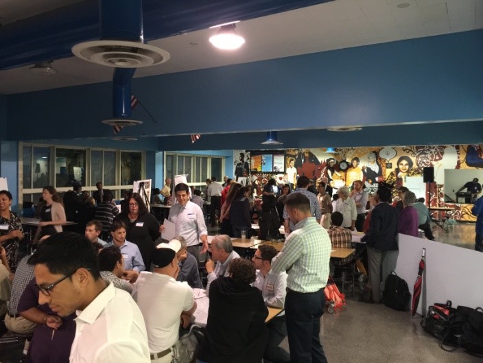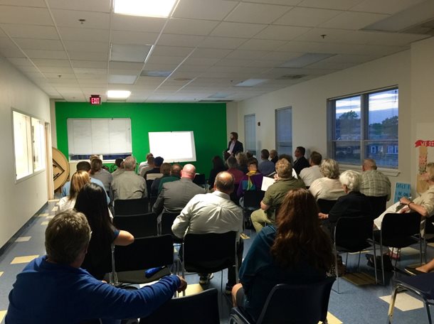 Over a hundred people packed the cafeteria at English High on Wednesday night to talk about the future of development along the Washington Street and Columbus Avenue corridor in JP and Roxbury.