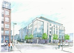 The developer will make sidewalk and landscaping improvements along A and West Fourth Streets as part of the project, which was designed by Embarc Studio.