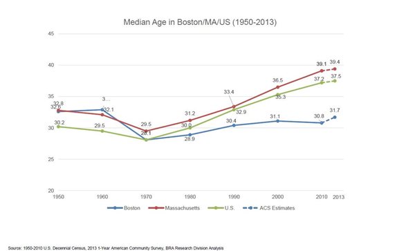 Boston, more than most cities, has a very youthful population. About a third of our population is between the ages of 20 and 34 years old.