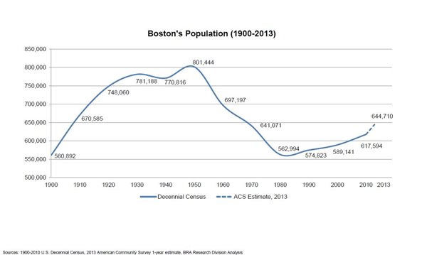 Boston’s population is on the rise. In fact, it grew by 14% between 1980 and 2010, exceeding 600,000 residents for the first time since 1970.