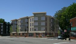 . The project will include 12 two-bedroom flats and four two-bedroom duplexes, with on-site parking for 29 vehicles. A modest 1,000 square foot ground floor retail space will help to further reactivate the now vacant site in West Roxbury’s commercial district.