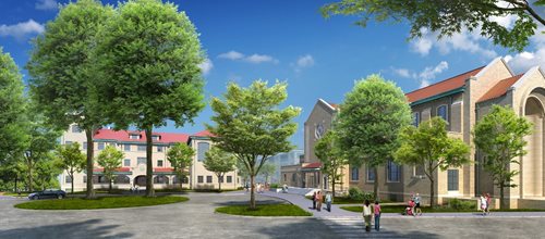 159 - 201 Washington Street is located in an approximately 11.6-acre lot in the Brighton, directly adjacent to the St. Elizabeth’s Medical Center above Washington Street. The project will build four new residential buildings and will restore the abandoned St. Gabriel’s Monastery, a Boston Landmark Building in significant need of repair, and the adjacent Church, retain the property of the existing Shrine of Our Lady of Fatima, and renovate the vacant house at 201 Washington Street. The project will enhance the Monastery Path and other improvements within Fidelis Way Park and enhance and maintain public access to the approximately 3-acre Olmsted Brothers-designed landscaped area along Washington Street.