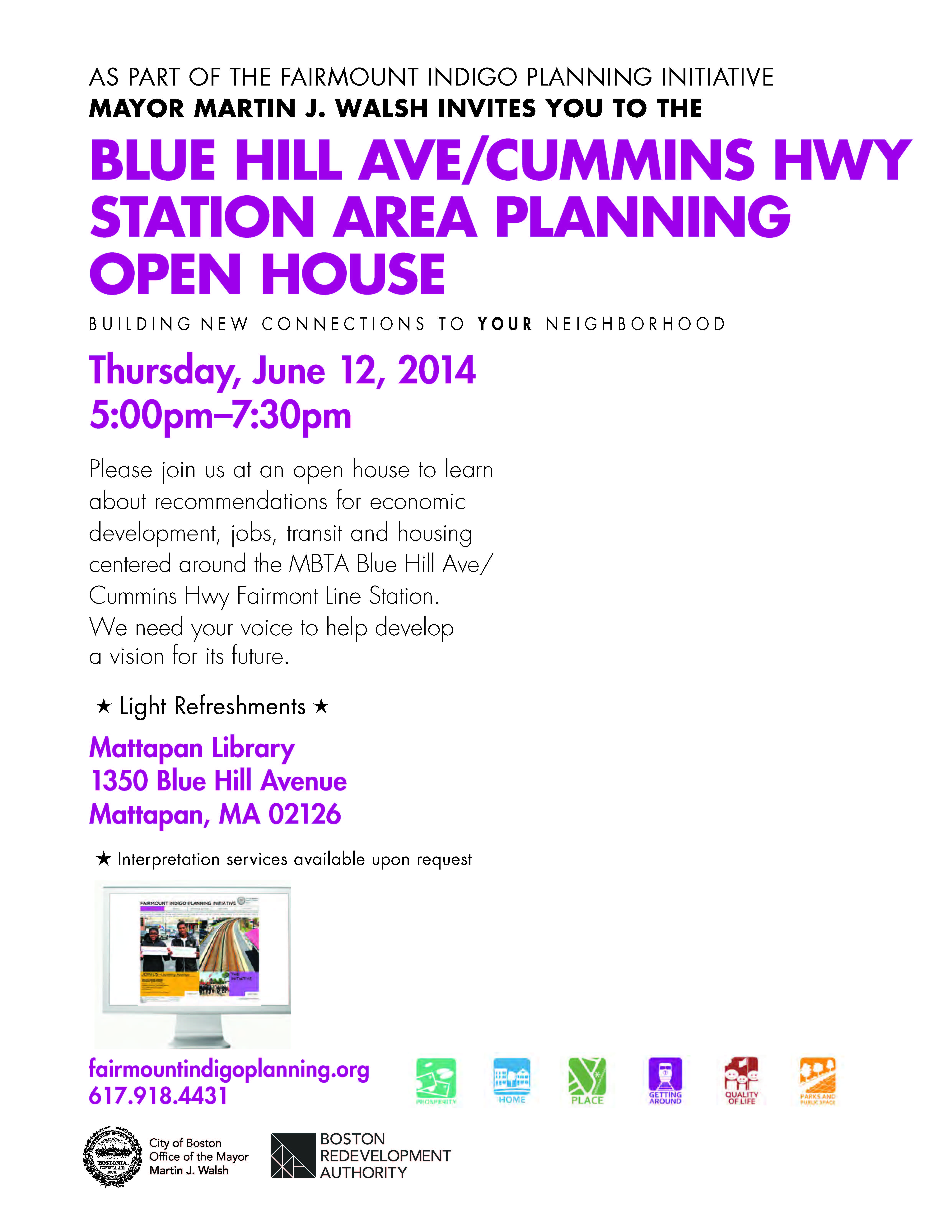 June 06, 2014 Blue Hill Ave/Cummins Hwy Station Area Planning Open House Offers Live and Online Options for Community Participation