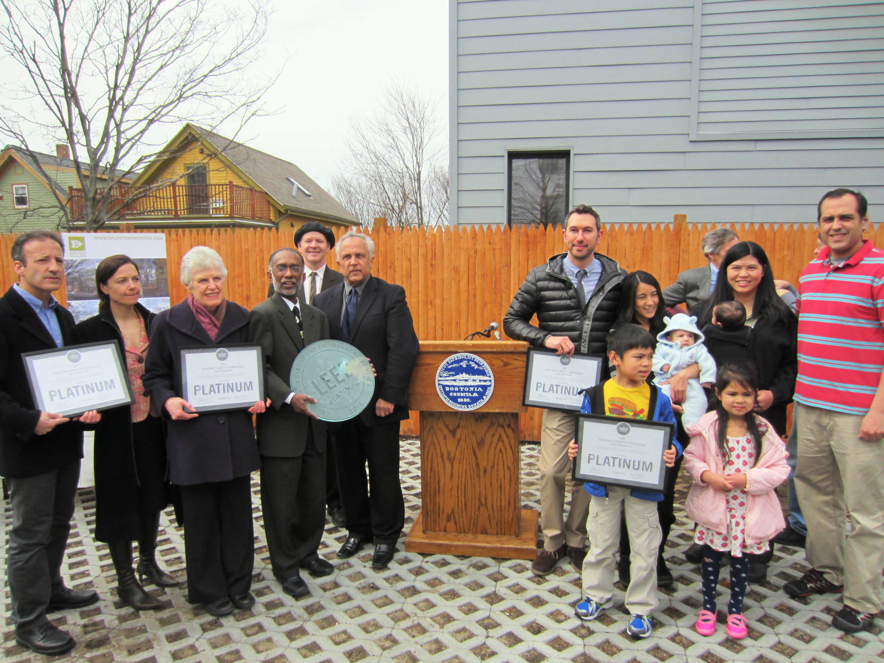 April 02, 2014 City Officials, Homeowners, and Developer Celebrate LEED Platinum Dedication for E+ Homes in Roxbury