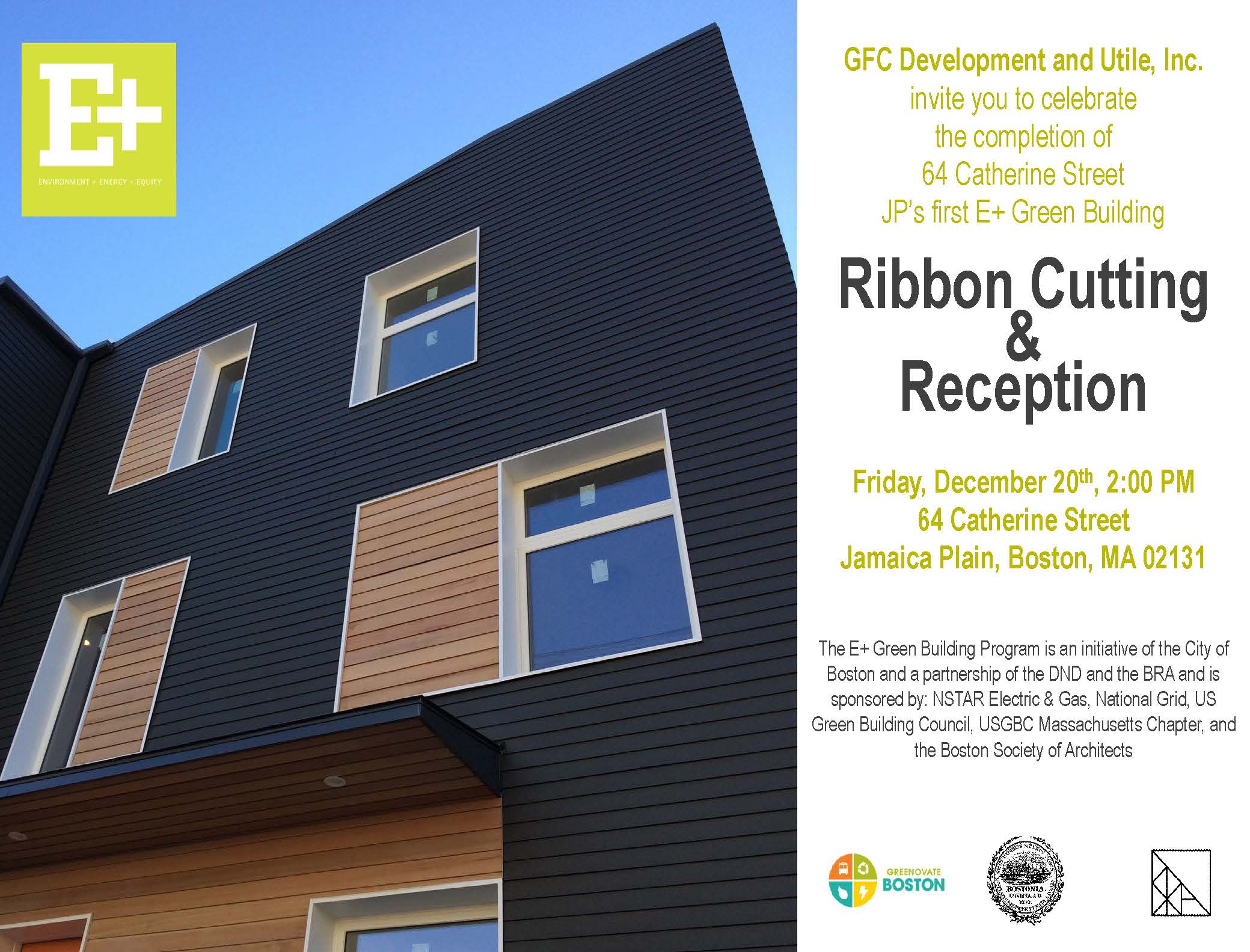 December 13, 2013 You're Invited: Ribbon Cutting on Jamaica Plain's First Energy Positive (E+) Green Building