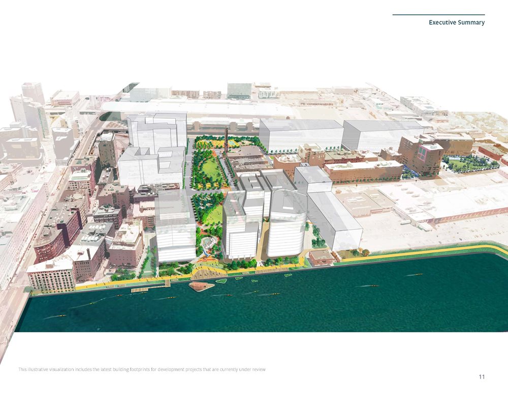 The 100 Acres Master Plan provides a framework for transforming the existing surface parking lots around the Proctor & Gamble/Gillette (“P&G/Gillette”) plant, the USPS facility, and Fort Point historic structures to a vibrant 24-hour, mixed-use neighborhood anchored by over 11 acres of new public open space and almost 5.9 million square feet of development. The Master Plan is the culmination of over five years of collaboration between residents, property owners, City and State agencies, and other interested parties. Together these groups have created a bold vision for the 100 Acres that incorporates a broad set of planning principles and addresses many concerns voiced during the community process.