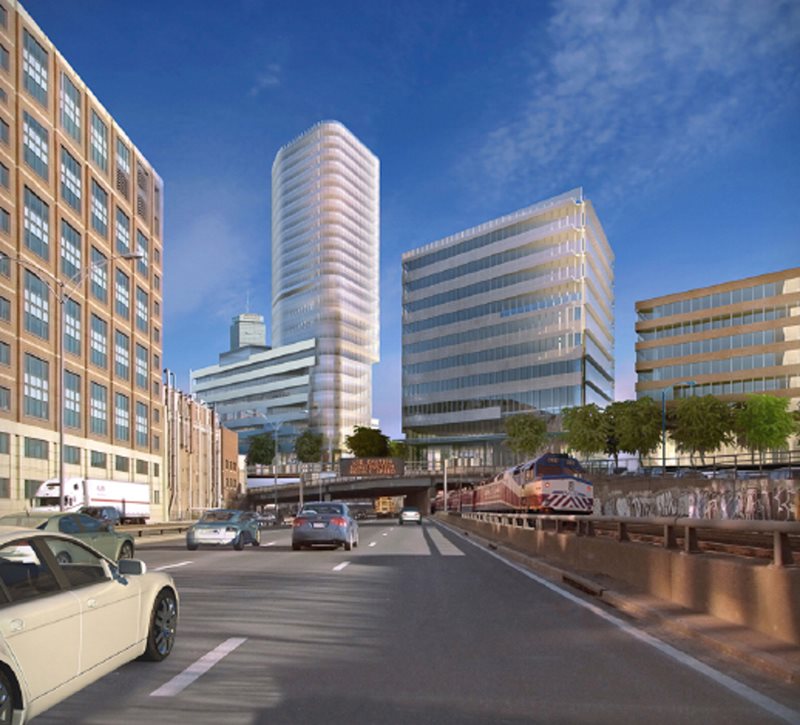 MassDOT Turnpike Air Rights Parcel 7 is one of four Air Rights Parcels that interrupt pedestrian movements between Kenmore Square and the surrounding Fenway neighborhood. Bounded by Beacon Street to the north and Brookline Avenue to the south, redevelopment of this parcel contains the potential to dramatically reshape the public realm while bringing a vibrant mix of uses to the area. Per MOU between the City and State, all Turnpike Air Rights development is formally reviewed by a Citizen’s Advisory Committee (CAC) composed of neighborhood residents, business owners, community organizations, and professionals. After extensive BRA, MassDOT, and CAC analysis and comment on design and impact, Meredith Management was approved for the redevelopment of Turnpike Air Rights Parcel 7 in 2009. The Fenway Center program includes 500 residential units, 170,000 sf of office space, 90,000 sf of retail, and 30,000 sf of green space. In conjunction with this project, the $13.5 million reconstruction of the Yawkey Commuter Rail Station is scheduled to be completed by the end of 2013.