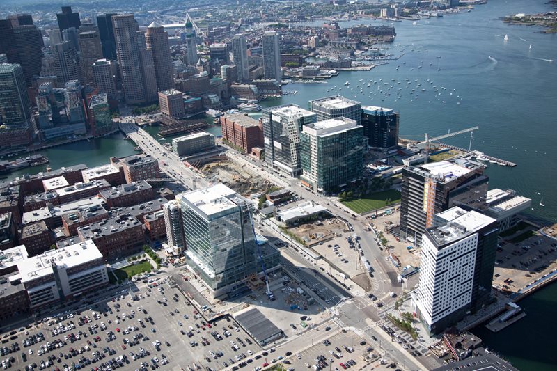 The South Boston MHP renewal comprises the entire 108 acres of the South Boston MHP planning area, with a single-site amendment for the parcels at 150 Seaport Boulevard, where the Whisky Priest and Atlantic Beer Garden establishments are currently located. When the South Boston MHP was being developed in 2000, these properties were some of the only active businesses in the planning area, functioning as water-dependent seafood markets up until the late 1990s, when they were converted into restaurant use. The redevelopment of these parcels was not anticipated at the time of the South Boston MHP, and provisions to facilitate additional density at the property were not included in the plan; however, the state’s approval of the South Boston MHP did contemplate additional height at the location with the consolidation of developable land. With the parcels now under common ownership, and surrounded by new development, there is new interest and opportunity to revitalize the property and have it function to expand the Harborwalk network, enhance the public realm, and improve waterfront access.