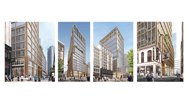 The Proposed Project will involve the demolition of the existing buildings and the construction of the new 23-story retail/office building. The building will include two levels of retail space as well as one below-grade level of retail totaling approximately 53,770 square feet of retail space along Bromfield and Washington Streets, and approximately 356,930 square feet of office space above, for a total of approximately 417,000 square feet of gross floor area. The building entrance will be on Bromfield Street, with retail entrances and public realm improvements along Bromfield and Washington Streets.