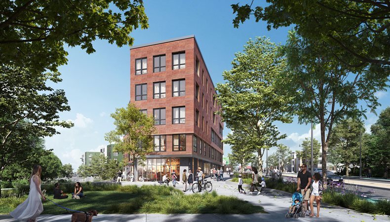 The Proponent proposes to redevelop the Project Site into an approximately 249,534 gross square foot (gsf) transit-oriented residential development, creating 220 new rental housing units, 1,144 gsf of retail space, 121 structured parking spaces, and significant improvements to the public realm. The Project has been carefully designed to relate to the urban transit corridor and streetscape along Bennington Street, as well as the natural beauty of the Belle Isle Marsh. The proposed design thoughtfully enhances the Bennington Street streetscape while connecting it to the Belle Isle Marsh through an accessible pathway and reimagined public realm at the intersection of Bennington Street and Palermo Street. Main floor uses include a mix of residential units, lobby space, amenities, and retail. Approximately 121 parking spaces will be provided in a structured parking garage level, which is accessed from Austin Avenue.