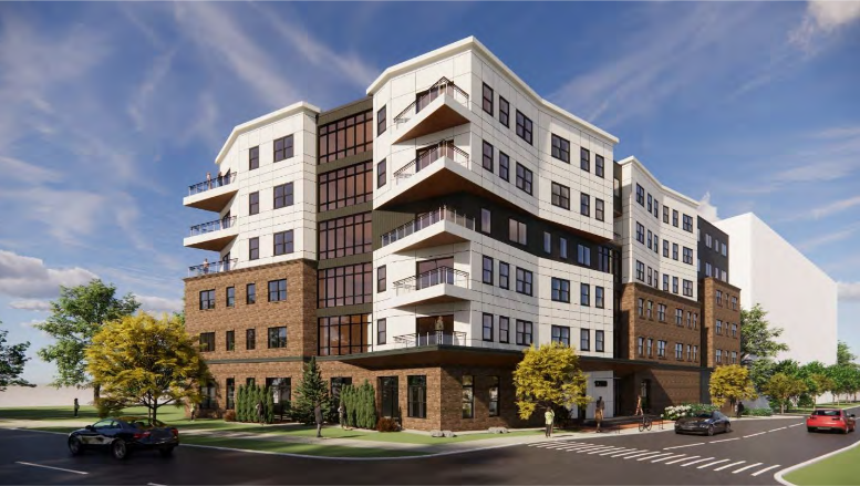 A new six (6) story multifamily residential building of approximately 67,000 gross square feet, with up to 58 dwelling units, 37 off-street vehicular parking spaces, resident and guest bicycle parking, a roof deck terrace and much-needed site and public realm improvements.