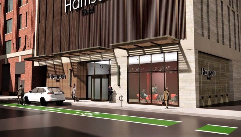 The Proponent proposes to redevelop an approximately 3,275-square-foot Project Site (having an assessor’s parcel number of 0304979020), which is currently occupied by a dilapidated and vacant 5-story commercial building, into a new 25-story hotel consisting of approximately 106- guest rooms occupying approximately 79,300 square feet of gross floor area including 600 square feet of community art space at the ground floor. The new hotel building will take advantage of nearby available off-site parking in several public garages. The new hotel will be served by 20 bicycle storage spaces within the building as well as providing 6 exterior bicycle spaces for visitors in conformance with City guidelines.