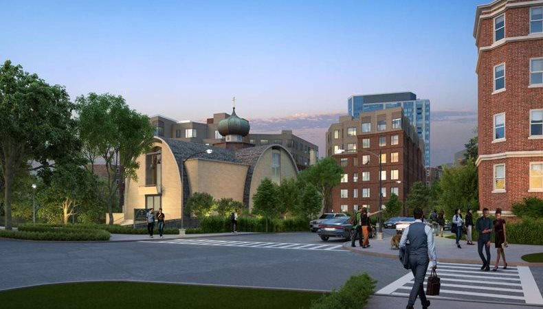 The Project includes construction of two 7-story residential buildings in the rear of the Project Site, adjacent to the existing Holy Trinity Orthodox Cathedral. The buildings will be approximately 130,221 SF and include approximately 117 residential units. Building 1 will contain 48 residential home ownership units, 100 percent of which will be affordable units. Building 2 will contain 69 market rate residential apartments. Covered parking will be included in the ground floor level of both buildings. Additionally, the Project includes landscape features designed to solidify and reestablish the prominence of the existing cathedral in the neighborhood for future generations.