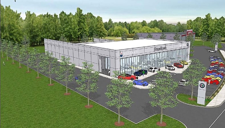 The Proposed Project consists of the redevelopment of the former Martignetti Liquors site into a new single story automobile dealership including sales and service business. The new Maserati - Alfa Romeo building will measure approximately 27,000 gross square feet including 102 surface parking spaces with related site improvements. The Proposed Project will change the existing legal uses and occupancy of the premises from Liquor Store and Bank to Indoor and Outdoor Sales of new or used motor vehicles, automotive parts, accessories and supplies.