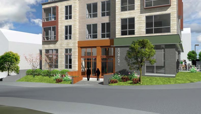 The proposed project consists of the demolition of the existing rooming house and the construction of an approx. 32,110 GSF mixed-use building with 20 residential rental units, 22 off street parking spaces, and ground floor retail.