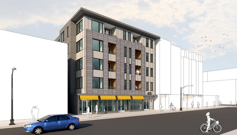 Broadway RJTP, LLC proposes a new five-story, mixed-use building located at 400 West Broadway consisting of 36 residential units, two commercial retail spaces and garage parking for 34 vehicles. The Proposed Project is approximately 43,225 SF and the site is comprised of one parcel of land that is 9,560± SF.