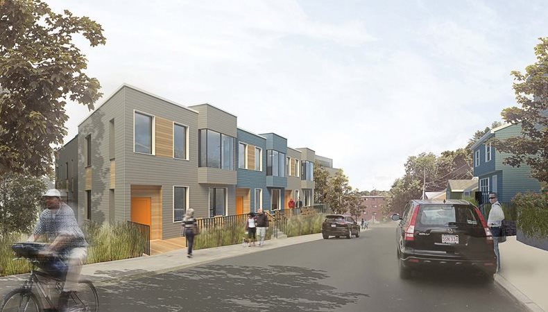 Encore Properties, LLC, proposes a new five-story, 37-unit, mixed-use building consisting of approximately 44,150 gross square feet including 2,000 square feet of ground floor commercial retail space. Its residential component will consist of 100% homeownership units. The project also provides parking at a ratio of one space per dwelling unit, for a total of 37 spaces. It also incorporates a lushly planted garden courtyard along Langley Road to provide greenspace, an outdoor activity area for residents, a new commercial space targeted towards local retail, and a transitional buffer between the larger-scale structure on Washington Street and the town homes on Langley Road.